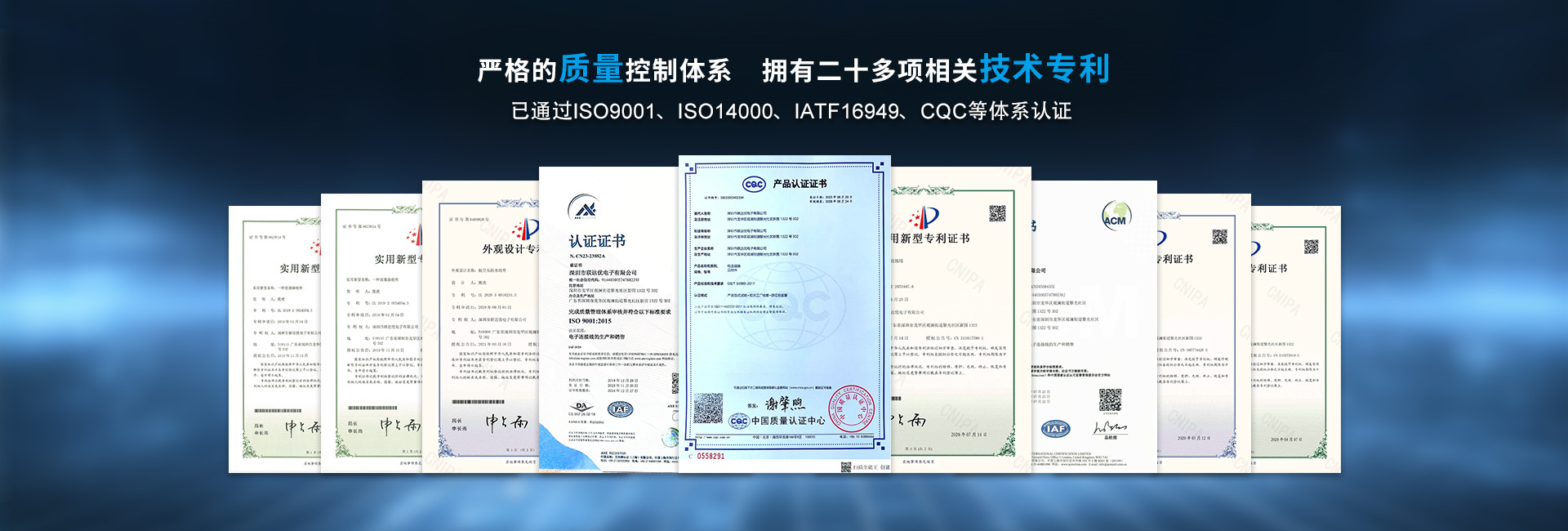 聯達優公司已通過ISO9001、ISO14000、IATF16949體系認證,擁有二十多項相關技術專利并在不斷擴展更新中,我們可為客戶提供產品防水解決方案從原型設計到批量交付的全鏈路服務,確保各類智能設備在復雜環境下穩定連接與信號傳輸安全可靠